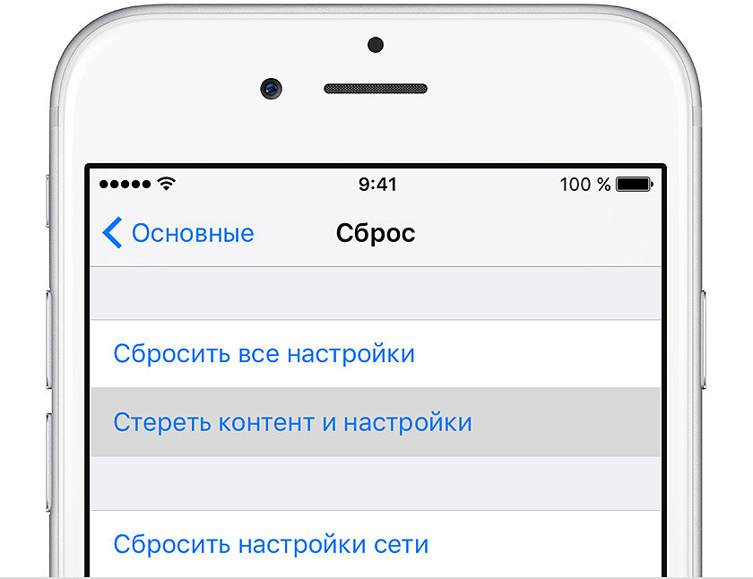 нажмите «Стереть весь контент и настройки».